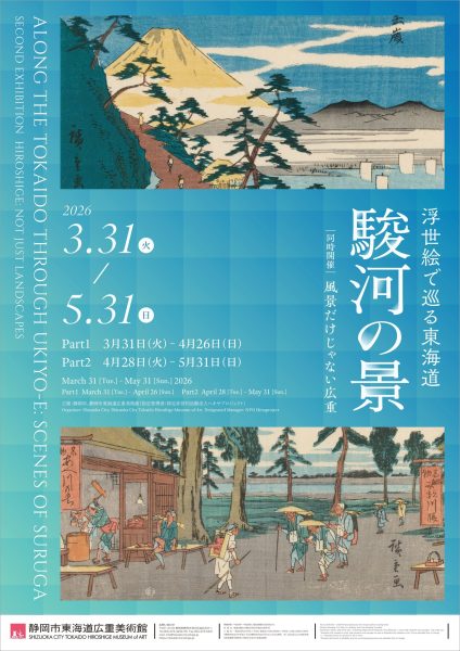 現在の静岡県中部の広大な範囲に該当する江戸時代の駿河国は、富士山や駿河湾など雄大な地形を有し、景勝地や旧跡など多くの名所が点在していました。本展では歌川広重が手掛けた東海道シリーズを中心に駿河国(沼津~島田)を描いた浮世絵を紹介します。様々な駿河の風景やそこに生きる人々の風俗をお楽しみください。